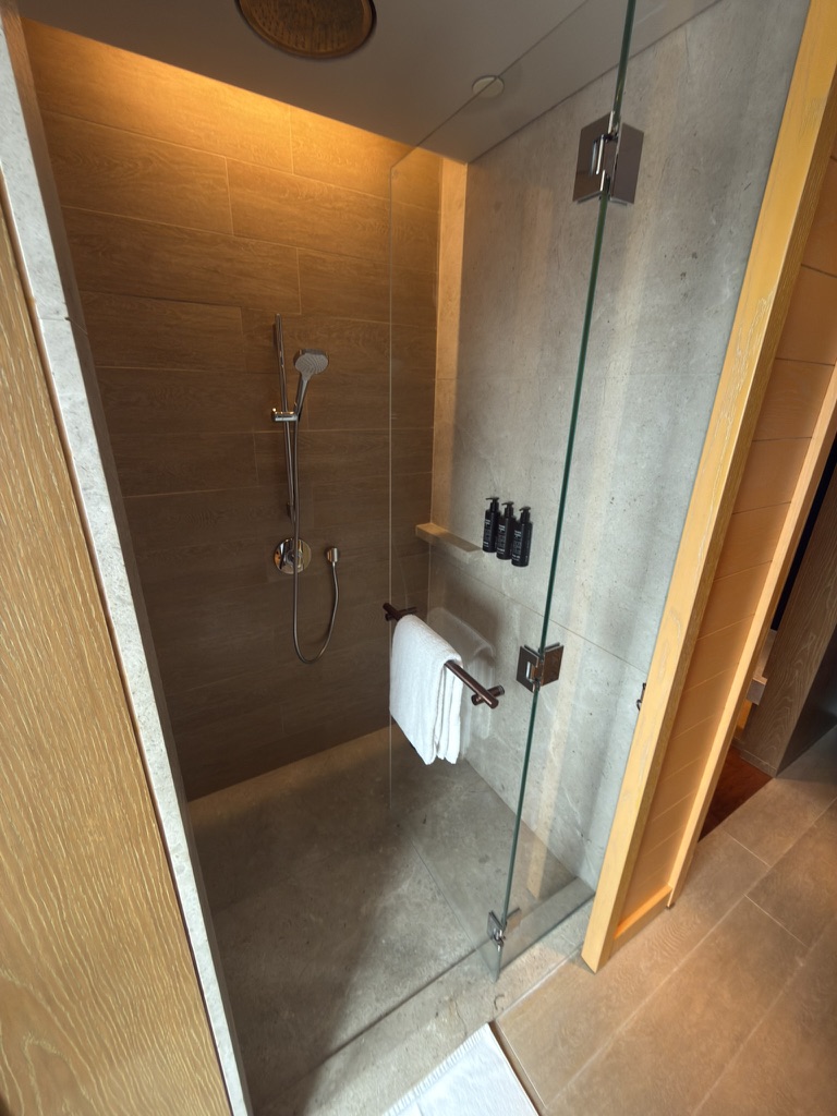 A rainfall shower and dedicated toilet room. While it wasn't a Japanese toilet, there was a fountain spray bidet feature.