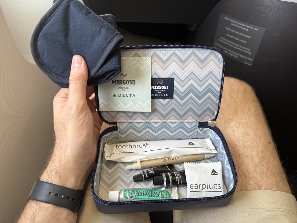 Delta provides full bedding on these flights. You'll find an extra pillow and duvet waiting at your seat. They looked comfortable, though I didn't test them since I wasn't planning to sleep on this flight.