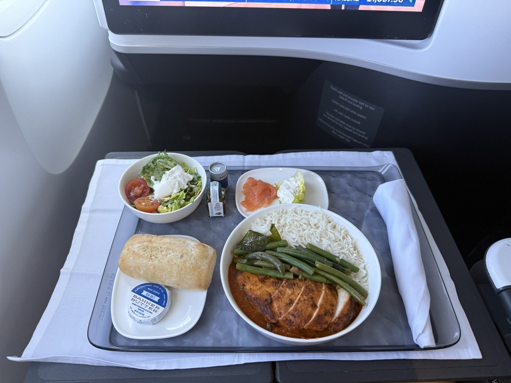 The food was good, though nothing extraordinary. I went with the chicken tikka masala, which had great flavor and the right amount of spice to cut through typical airplane blandness.