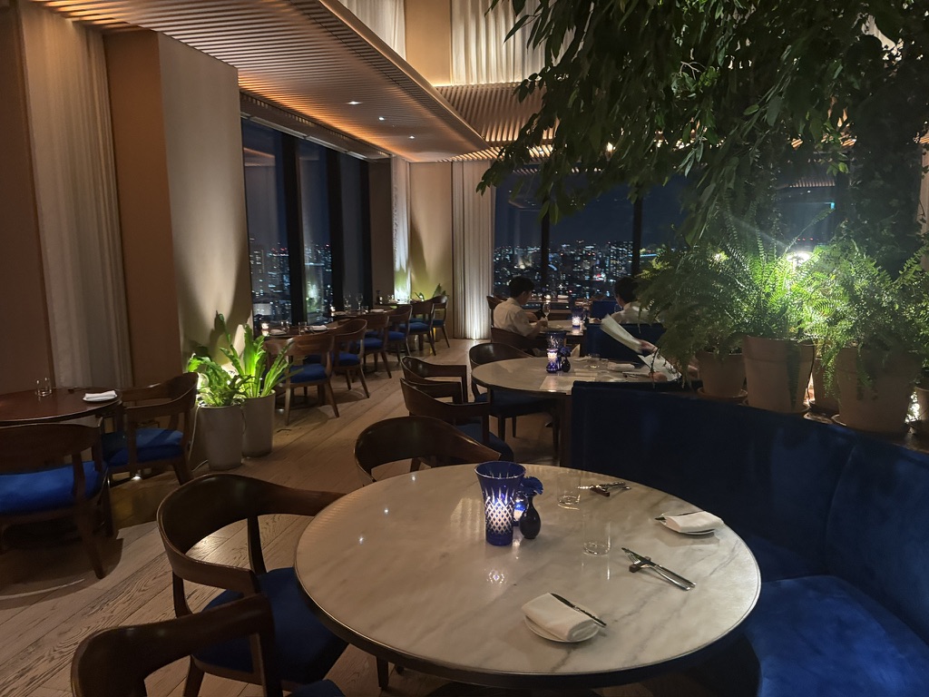 Appropriately named for its royal blue seating booths contrasted against high ceilings, lush greenery, and sweeping views. This is a genuinely aesthetic place to eat.