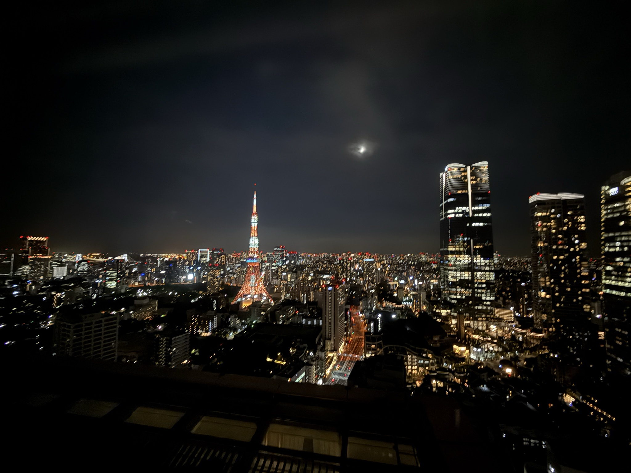I was on the 39th floor. Upon entering, the motorized curtains pulled back to reveal sunset over Tokyo. Tokyo Tower sat slightly off-center in the window frame.