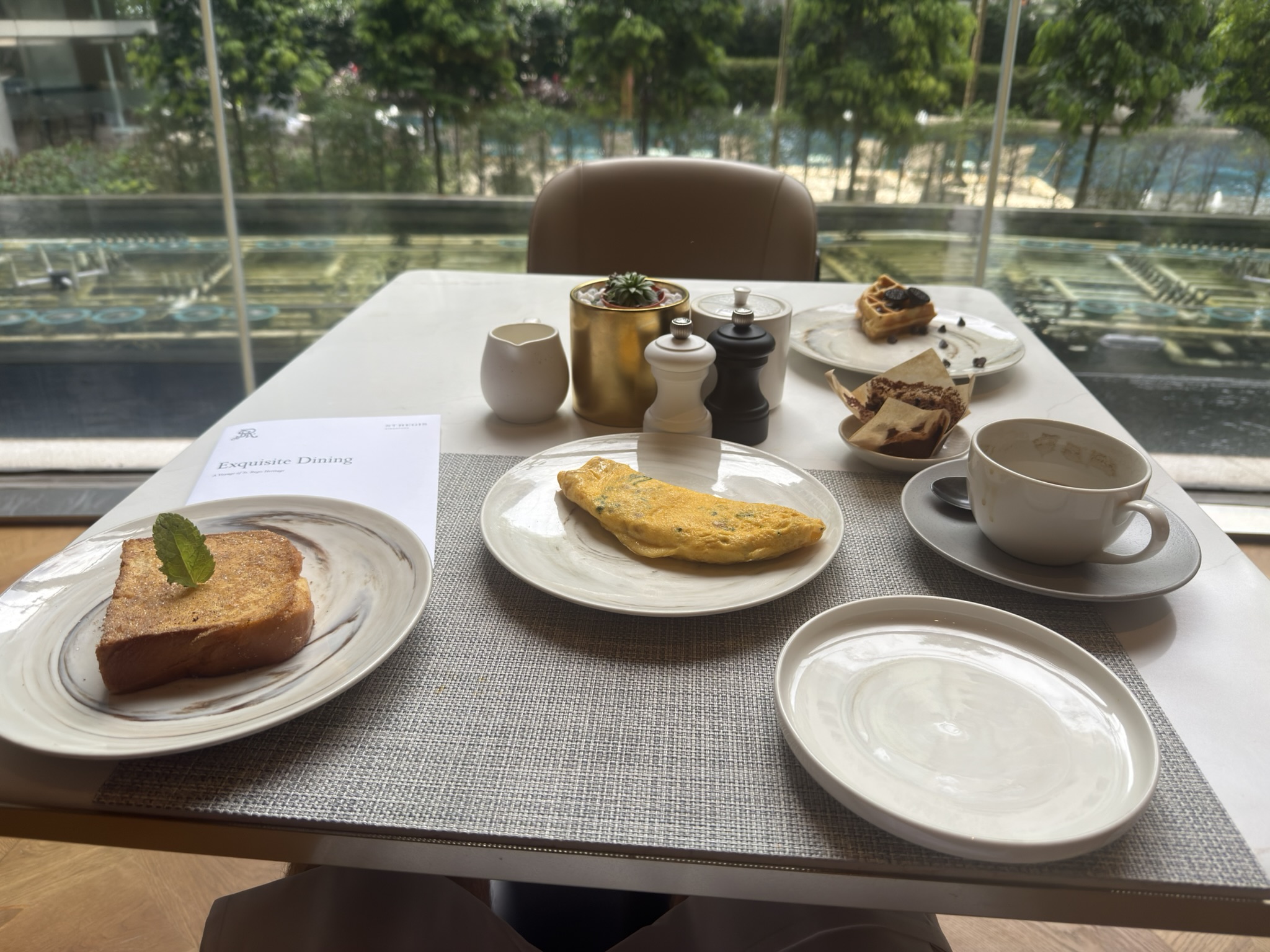 Breakfast at Astor Grill delivered with both Western and Asian options including Indian food. The made-to-order menu supplemented a solid buffet well.